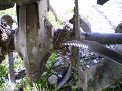 鎌の峯(背部)の曲線が耕耘機の刃の曲線によく当たります。 刃にこびりついた泥落としに最適です。 |
